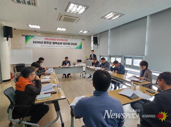 뉴스펀치 정홍균 기자 | 완주군이 가축분뇨 퇴비의 원활한 공급과 유통 활성화를 도모하고자 27일 군청에서 경축순환협의체 간담회를 개최했다.