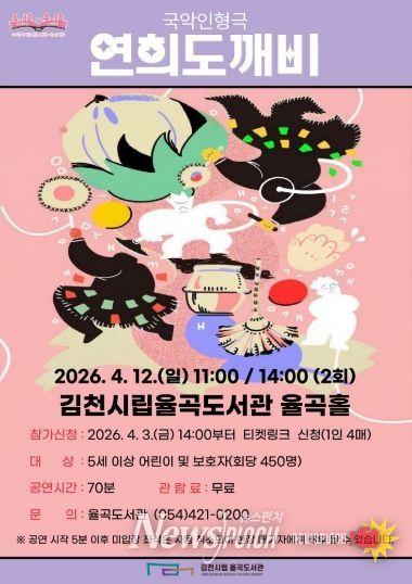 뉴스펀치 박세훈 기자 | 김천시립 율곡도서관(관장 이신기)은 오는 4월 12일, ‘도서관의 날’을 맞아 율곡도서관 율곡홀에서 국악인형극 '연희도깨비'를 개최한다고 밝혔다. 이번 공연은 ‘도서관의 날’(4월 12일)과 ‘도서관 주간’(4월 12일~18일)을 기념하여, 지역 주민들의 도서관 이용을 활성화하고 독서 문화를 확산하기 위해 마련됐다.