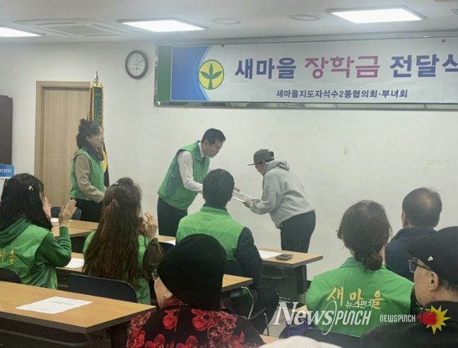 뉴스펀치 박상훈 기자 | 안양시 석수2동 새마을지도자협의회와 새마을부녀회는 지난 25일 석수2동 행정복지센터에서 관내 저소득가정 고등학생 3명에게 각각 30만 원씩 총 90만 원의 장학금을 전달했다.