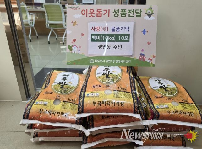 뉴스펀치 박상훈 기자 | 생연1동 행정복지센터는 지난 26일 관내 주민으로부터 어려운 이웃을 위한 따뜻한 나눔의 쌀(10kg) 10포를 기탁받았다고 밝혔다.