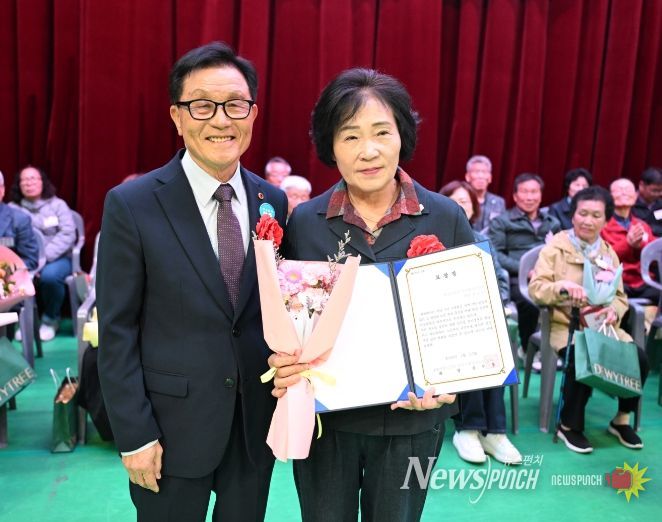 뉴스펀치 최영남 기자 | 완주군의회 이순덕 운영위원장과 성중기 의원이 27일 완주군 문화체육센터에서 열린 ‘2026년 효도대상 시상 및 어르신 위안 행사’에서 효사랑실천 대한노인회 전북특별자치도 연합회장 표창을 각각 수상했다.