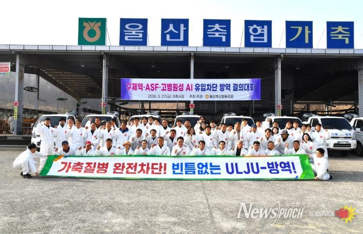 뉴스펀치 김윤걸 기자 | 울산축협이 27일 울산축협 가축시장에서 가축전염병 유입차단을 위한 결의대회를 개최했다.