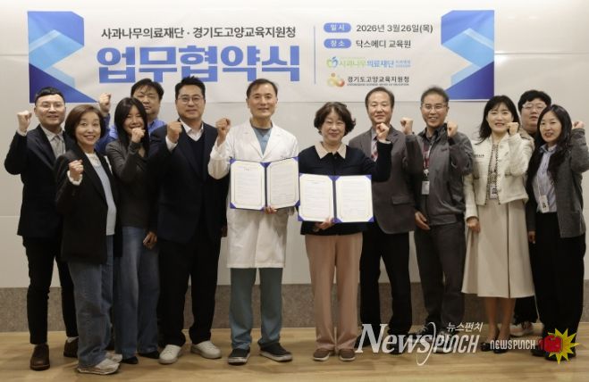 뉴스펀치 박상훈 기자 | 경기도고양교육지원청은 2026년 3월 26일, 의료법인 사과나무의료재단과 고양 다잇다 공유학교 운영을 위한 업무협약을 체결했다.