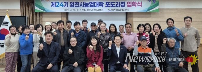 뉴스펀치 박세훈 기자 | 영천시는 지난 26일 농업기술센터에서 교육생 29명이 참석한 가운데 ‘제24기 농업대학 포도과정’ 입학식을 개최하고, 본격적인 학사 일정에 돌입했다고 밝혔다.