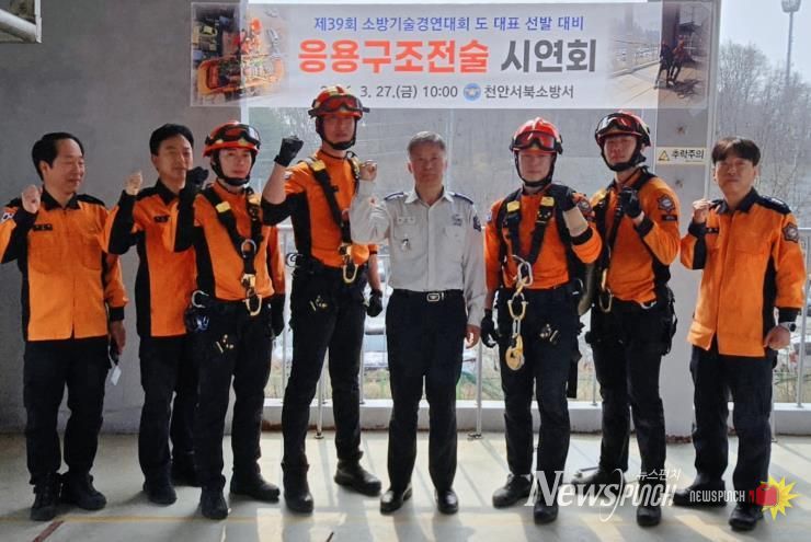 뉴스펀치 이현승 기자 | 천안서북소방서는 27일 오전 10시, 오는 4월 2일부터 3일까지 개최되는 제39회 전국 소방기술경연대회 도 대표 선발 대회를 앞두고 응용구조전술 시연회를 개최했다.