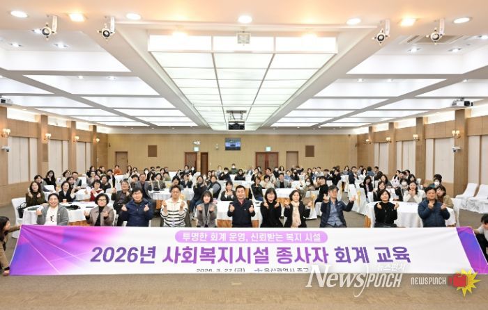 뉴스펀치 김윤걸 기자 | 울산 중구는 3월 27일 오후 4시 중구청 대회의실에서 사회복지시설 종사자 130여 명을 대상으로 2026년 회계 교육을 실시했다.