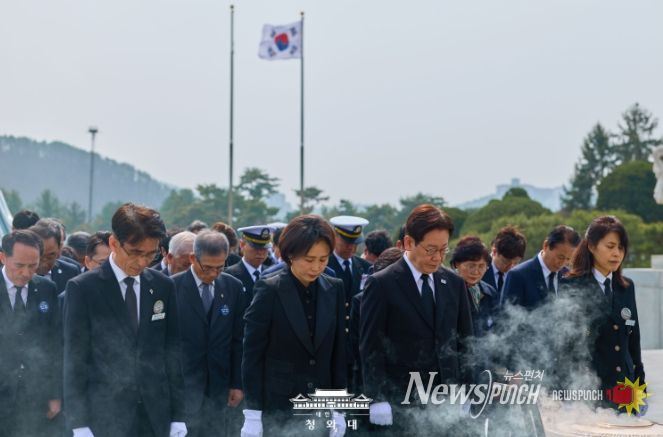 이 대통령과 김혜경 여사는 이날 기념식에 앞서 제2연평해전과 연평도 포격전 전사자 묘역, 천안함 46용사 묘역, 고 한주호 준위 묘소를 차례로 찾아 참배했다.