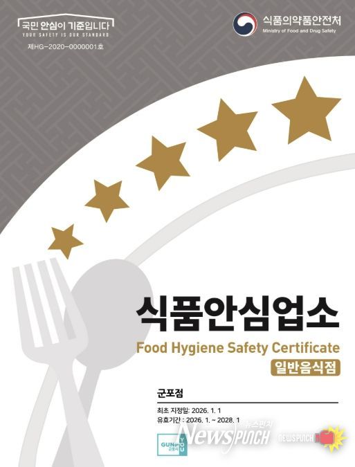 뉴스펀치 박상훈 기자 | 군포시는 식품안심업소(음식점위생등급 지정업소, 이하 지정업소) 재지정 평가에 대한 영업자 부담을 줄이고 재지정률을 높이고자 이달부터 지정업소 청소비 지원 사업을 추진한다.