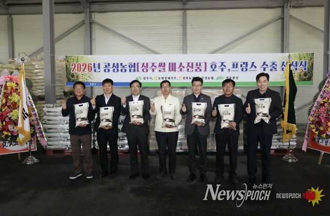 뉴스펀치 박세훈 기자 | 상주시는 3월 27일 공성농협 미곡종합처리장(RPC)에서 상주쌀 ‘미소진품’의 프랑스·호주 선적식을 진행하며 총 7.5톤 규모(프랑스 1.6톤, 호주 5.9톤)의 맛있는 미소를 해외 식탁으로 전달했다.