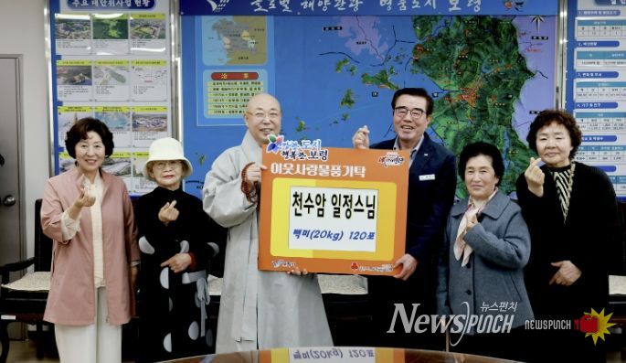 뉴스펀치 이현승 기자 | 보령시는 27일 시장실에서 김동일 보령시장, 천수암 일정스님, 관계자 등 3명이 참석한 가운데 이웃사랑 후원물품 전달식을 가졌다고 밝혔다.