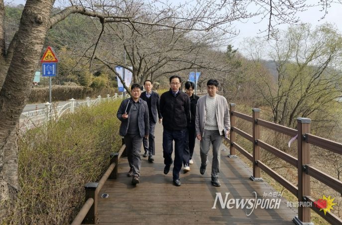뉴스펀치 박상훈 기자 | 수원시 장안구는 지난 27일, 수원의 대표적인 봄나들이 명소인 ‘광교마루길’의 개선공사 현장을 방문해 최종 점검했다.