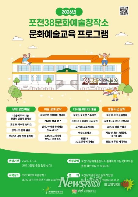 뉴스펀치 박상훈 기자 | 포천문화관광재단이 운영하는 포천38문화예술창작소가 차별화된 교육 프로그램으로 시민들의 꾸준한 관심을 받으며 지역 문화예술공간으로서 입지를 넓혀가고 있다.