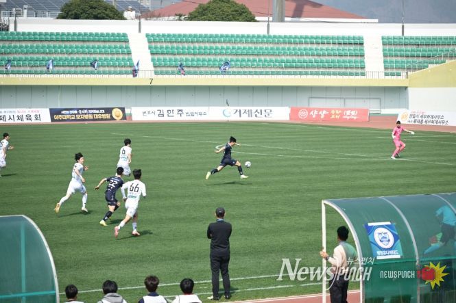 뉴스펀치 박세훈 기자 | 거제시민축구단이 2026시즌 K4리그 홈 개막전 경기에서 평창유나이티드를 상대로 무승부를 기록했다.