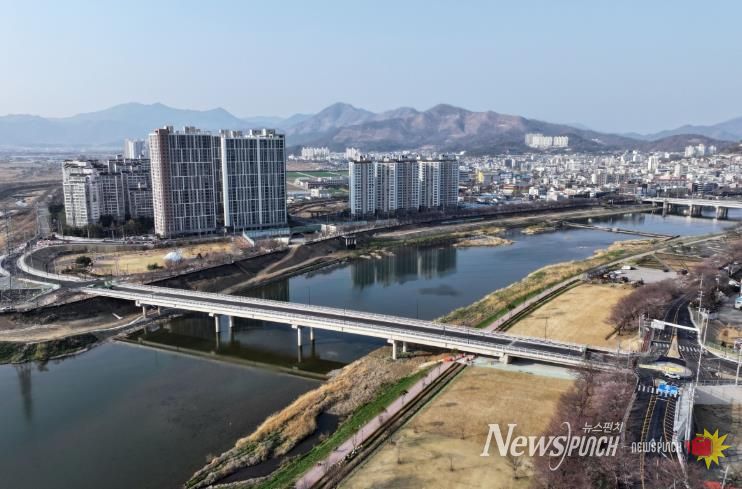 지난 2023년 4월 착공 후 3년여간의 공사를 마친 남천2교는 내이동 남천공원과 삼문동 신시가지를 잇는 교량(길이 252m, 폭 15.9m)과 접속도로(길이 318m, 폭 15m), 그리고 원활한 교통 흐름을 위한 회전교차로 2개소로 구성됐다.