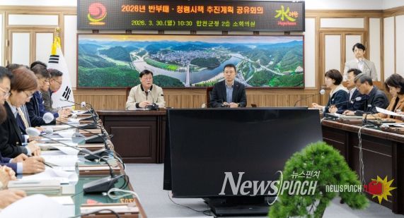 뉴스펀치 박세훈 기자 | 합천군은 30일 군청 소회의실에서 김윤철 군수를 비롯해 부군수 및 간부 공무원 등 20여 명이 참석한 가운데 회의를 열고, 2026년 반부패‧청렴시책 추진계획을 공유했다.