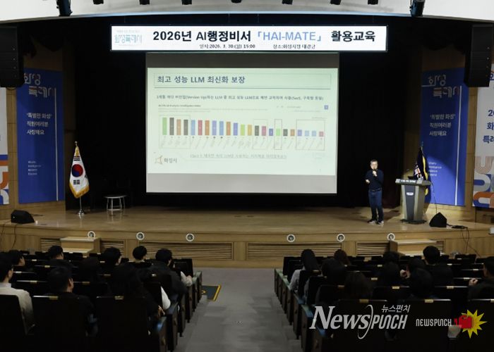 뉴스펀치 박상훈 기자 | 화성특례시는 30일 AI업무지원 서비스 ‘HAI-MATE’ 활용 교육을 실시했다