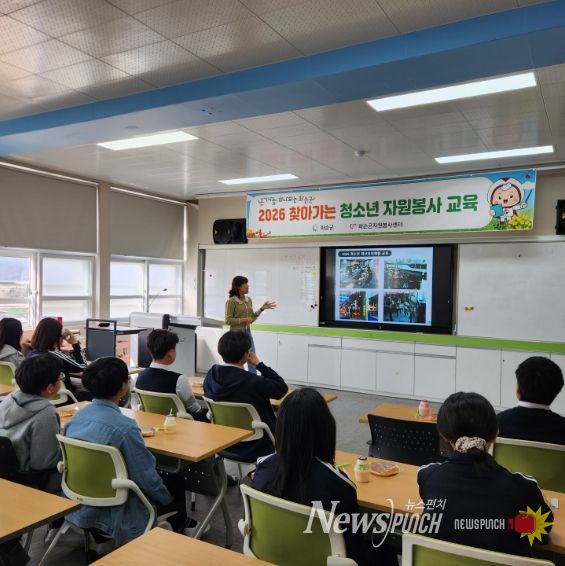 뉴스펀치 김용희 기자 | 화순군은 지난 27일 화순동복중학교에서 ‘2026 찾아가는 청소년 자원봉사 교육’을 실시했다고 밝혔다.