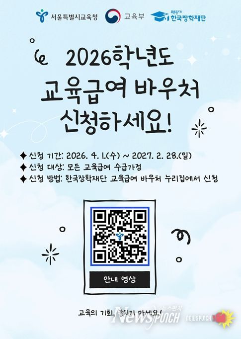뉴스펀치 박상훈 기자 | 서울특별시교육청은 저소득층 가정 학생들이 경제적 부담 없이 학업에 전념할 수 있도록 돕는 ‘2026학년도 교육급여 바우처’를 오는 4월 1일부터 내년 2월 28일까지 교육급여 바우처 전용 누리집에서 신청할 수 있다고 밝혔다.