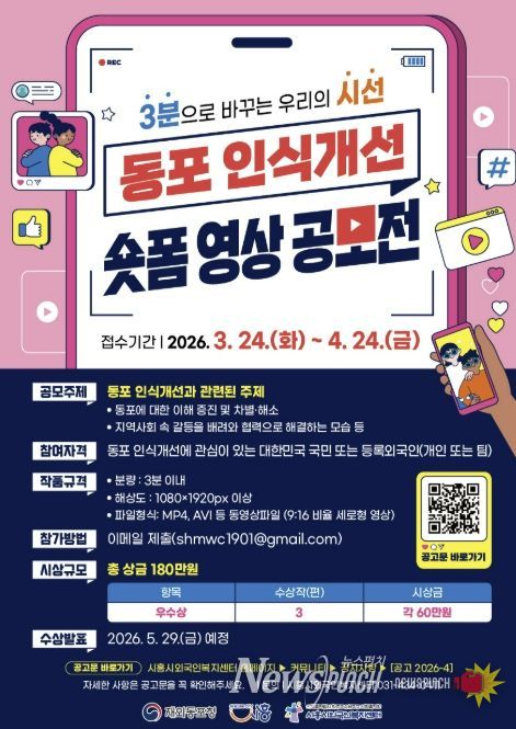 공모 기간은 3월 24일부터 4월 24일까지이며, 출품작은 3분 이내의 세로형(9:16 비율) 숏폼 영상으로 제출해야 한다. 심사는 1차 전문가 심사와 2차 시민참여 심사로 진행되며, 최종 결과는 오는 5월 29일 발표될 예정이다.