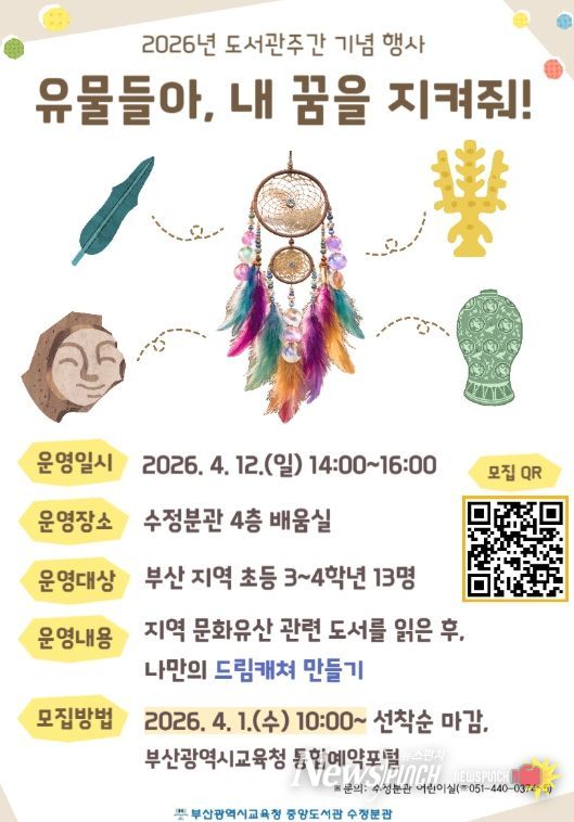 뉴스펀치 김윤걸 기자 | 부산광역시립중앙도서관은 오는 4월 12일 중앙도서관 수정분관에서 초등학생 3~4학년 13명을 대상으로 도서관주간 기념행사 ‘유물들아, 내 꿈을 지켜줘!’를 운영한다.
