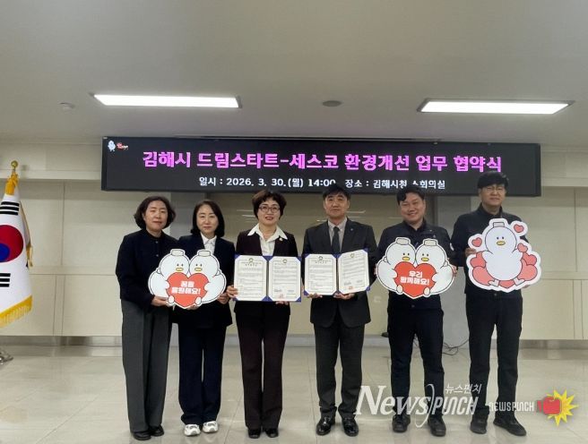 뉴스펀치 박세훈 기자 | 김해시는 지난 30일 주거 환경이 열악한 취약계층 아동 가구를 대상으로 ‘2026년 드림스타트 꿈을 키우는 클린 홈 사업’을 추진하기 위해 세스코홈케어와 업무 협약을 체결했다고 밝혔다.