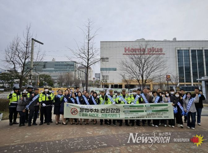 뉴스펀치 박상훈 기자 | 수원특례시는 30일 수원시청역 일원에서 ‘공유 자전거·전동킥보드 불법주차 견인강화’ 홍보 캠페인을 펼쳤다.