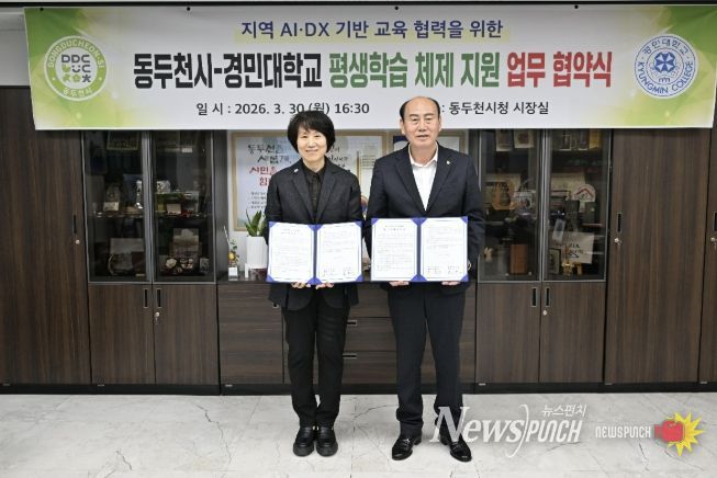 뉴스펀치 박상훈 기자 | 동두천시는 지난 30일 시청 시장실에서 경민대학교와 ‘AI 기반 평생학습 활성화를 위한 업무협약’을 체결했다고 밝혔다.