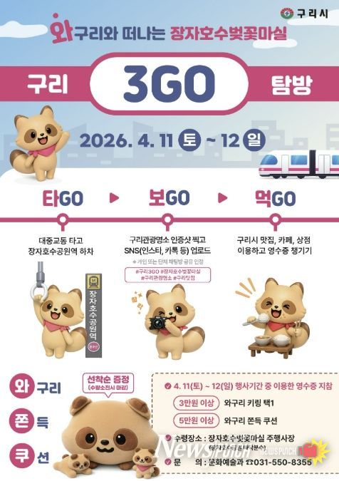 뉴스펀치 박상훈 기자 | 구리시는 오는 4월 11일부터 12일까지 시민과 관광객이 함께 즐길 수 있는 참여형 관광 프로그램‘와!구리와 떠나는 구리 3GO 탐방’ 행사를 운영한다고 밝혔다.