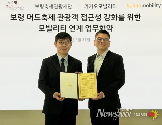 (재)보령축제관광재단은 31일 경기 성남시 판교 카카오모빌리티 본사에서 주식회사 카카오모빌리티와 ‘제29회 보령머드축제 관광 모빌리티 연계 서비스 도입을 위한 업무협약(MOU)’을 체결했다.