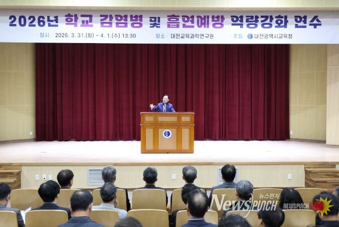 뉴스펀치 이현승 기자 | 대전시교육청은 3월 31일부터 4월 1일까지 이틀간 대전교육과학연구원 대강당에서 관내 초·중·고·특수·각종학교 학교장 및 업무 담당자를 대상으로 ‘2026년 학교 감염병 및 흡연 예방 역량 강화 연수’를 실시한다고 밝혔다.
