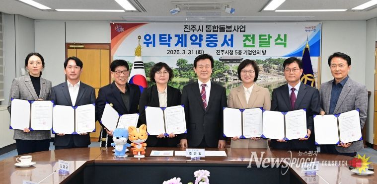 뉴스펀치 박세훈 기자 | 진주시는 31일, 관계 공무원, 7개 민간 제공기관 관계자 등이 참석한 가운데 통합 돌봄사업 서비스 제공기관에 ‘통합 돌봄 위탁계약증서’를 전달하고, 지역사회 통합 돌봄 지원체계 시스템 구축을 완료해 사업 시행 준비를 마쳤다고 밝혔다.