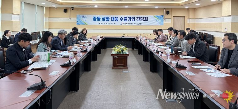뉴스펀치 김용희 기자 | 전라남도는 중동지역 정세 불안에 따른 글로벌 수출 환경변화에 대응하기 위해 3월 31일 전남테크노파크에서 유관기관과 수출기업 관계자들과 간담회를 열어 현장 애로사항을 점검하고, 실효성 있는 대응 방안을 논의했다.