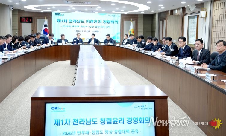 뉴스펀치 김용희 기자 | 전라남도는 3월 31일 도청 서재필실에서 도지사 권한대행 주재로 실·국장들이 참석한 가운데 ‘2026년 반부패·청렴도 종합대책 공유회의’를 개최하고, 청렴도 향상을 위한 추진 방향과 실행계획을 공유했다.