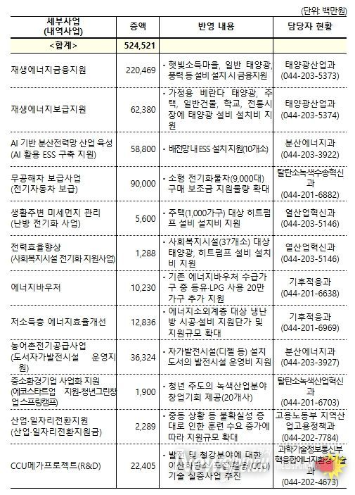 유가 상승과 산업구조 변화에 따른 고용 충격 완화를 위해 ▲산업·일자리 전환 지원에 23억원, 발전 및 철강 분야 탄소중립 핵심기술 확보를 위해 ▲CCU 메가프로젝트(R&D) 사업에 224억원도 편성한다.