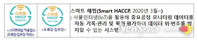 이에 식약처는 도축장 및 집유장도 스마트 해썹 적용업소로 등록할 수 있도록 스마트 해썹 등록 신청 절차·방법을 마련하고 스마트 해썹 심벌을 사용할 수 있는 우대 조치 근거 등을 마련했다.