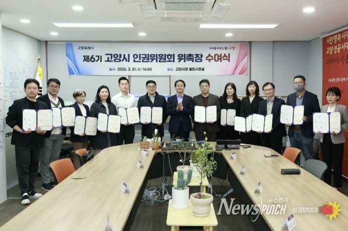 뉴스펀치 박상훈 기자 | 고양특례시는 지난 3월 31일 시청 열린시장실에서 ‘제6기 고양시 인권위원회’ 위촉장 수여식을 개최하고, 시민의 인권 보호와 증진을 위한 본격적인 활동에 나섰다.