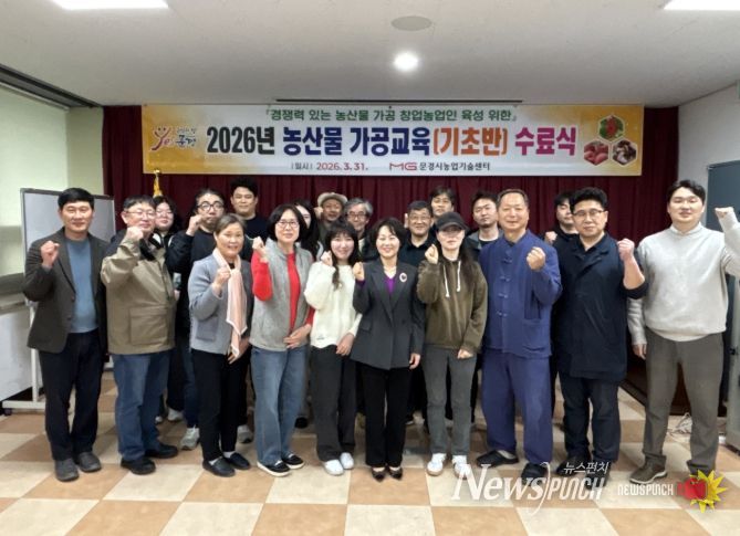 뉴스펀치 박세훈 기자 | 문경시농업기술센터는 지역 농산물 가공산업 활성화와 농업인 소득증대를 위해 운영한 ‘2026년 농산물 가공 교육(기초과정)’수료식을 성공적으로 개최했다고 밝혔다.