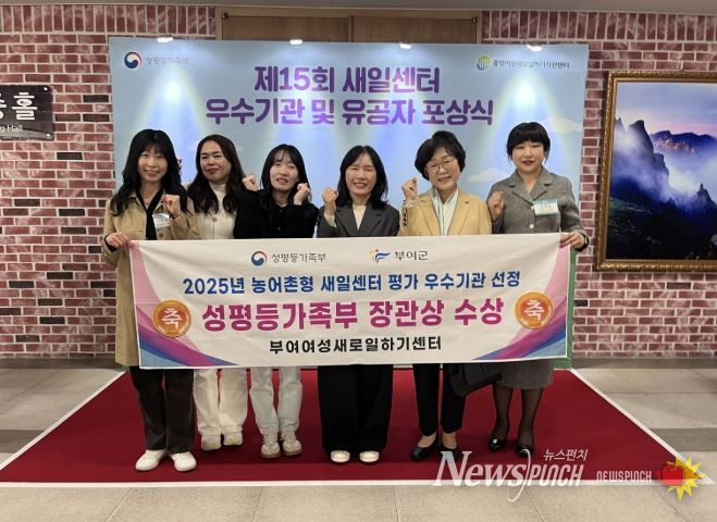 뉴스펀치 이현승 기자 | 부여여성새로일하기센터가 ‘2026년 여성새로일하기센터 유공 포상식’에서 성평등가족부 장관상을 받았다고 1일 밝혔다.