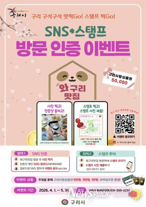 시 관계자는 “이번 행사는 시민들이 구리의 다양한 맛집을 직접 경험하고 사회관계망 서비스를 통해 공유하는 참여형 홍보 행사”라며 “특히 새롭게 도입한 도장 찍기 여행을 통해 지역 곳곳의 숨은 맛집을 즐기는 계기가 되길 바란다”라고 말했다.