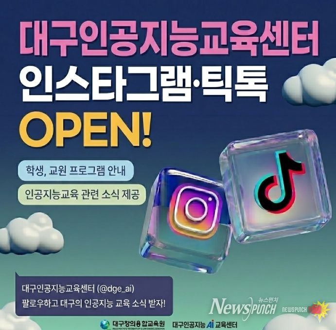 뉴스펀치 조평훈 기자 | 대구시교육청 창의융합교육원은 미래 인재 양성과 교육 현장의 디지털 전환을 지원하기 위해 대구인공지능교육센터 공식누리소통망서비스 채널을 개설하고, 시민 및 교육 가족과의 실시간 소통에 나선다고 밝혔다.