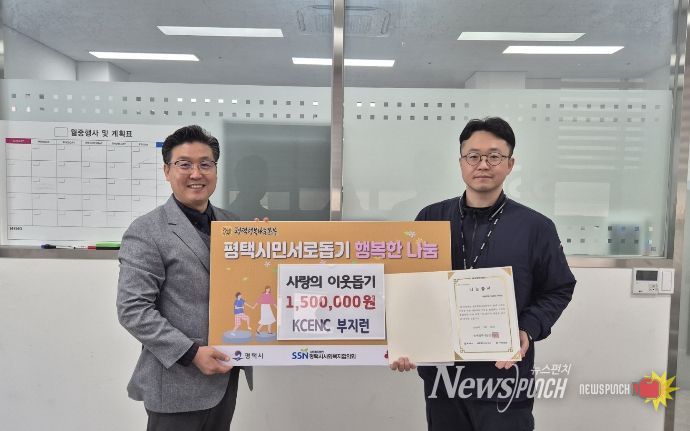 뉴스펀치 박상훈 기자 | ‘(주)KCENC 사내동호회 부지런’은 지난 3월 19일 평택시 관내 어려운 이웃들을 돕기 위해 평택행복나눔본부에 성금 150만 원을 전달했다. 이번 기부금은 회원들이 러닝, 등산, 헬스 등 다양한 운동을 통해 소모한 열량(칼로리)을 기부금으로 환산, 전환해 적립한 금액을 모아 마련됐다.