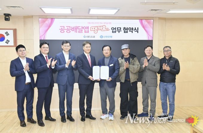 뉴스펀치 박상훈 기자 | 하남시는 3월 31일 시청 본관 2층 상황실에서 신한은행과 공공배달앱 ‘땡겨요’ 운영을 위한 업무협약을 체결하고, 전통시장 온라인 판로 확대에 본격 나섰다고 밝혔다.