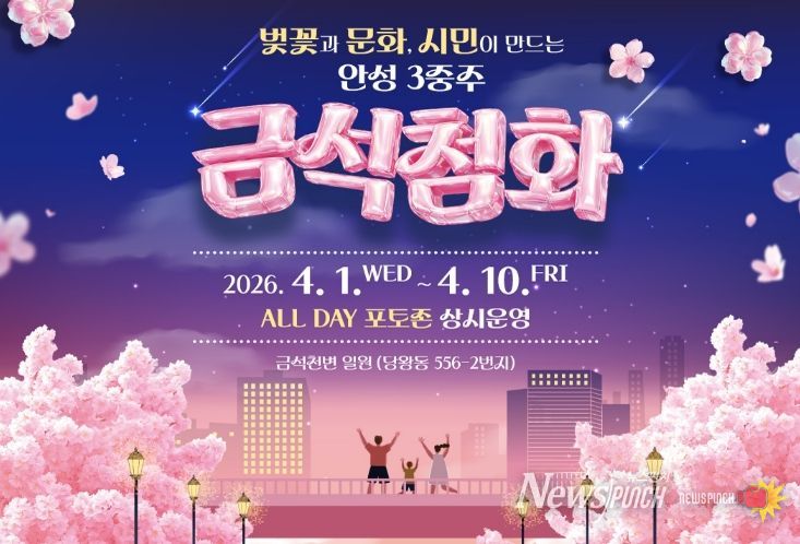 뉴스펀치 박상훈 기자 | 안성시 안성3동은 벚꽃이 절정을 이루는 개화기를 맞아 오는 4월1일부터 10일까지 열흘간 금석천변 일원(대덕농협 하나로마트~ 비룡초등학교 꿈의 다리)에서 ‘금석첨화’ 벚꽃 포토존을 운영한다고 밝혔다.