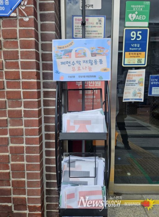 제작된 폐현수막 마대자루는 안성1동 행정복지센터 입구에 비치되어 있으며, 센터를 방문하는 주민이라면 누구나 용도에 맞춰 자유롭게 가져가 사용할 수 있다.