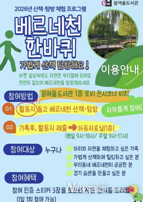 5월에는 북부도서관이 ‘백만송이 장미공원’을 주제로 사진전과 장미공원 둘레길 걷기 등 봄꽃 체험 프로그램을 운영하며, 지역 명소를 활용한 체험을 통해 시민 참여를 확대할 예정이다.