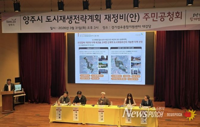 뉴스펀치 박상훈 기자 | 양주시가 지난 31일 경기섬유종합지원센터 대강당에서 ‘양주시 도시재생전략계획 재정비 수립’을 위한 공청회를 개최했다.