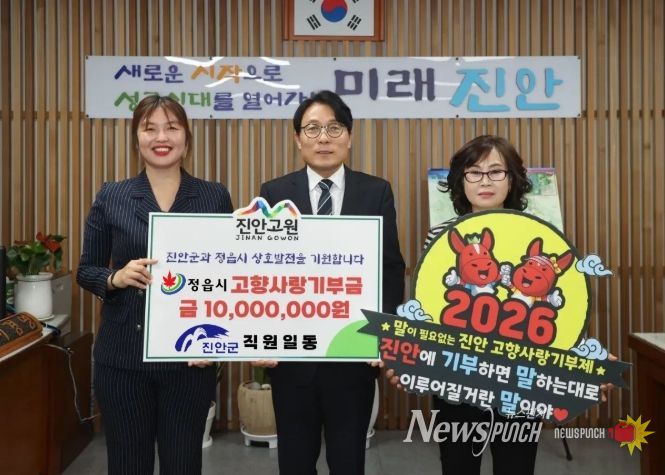 뉴스펀치 정홍균 기자 | 진안군청과 정읍시청 직원들이 고향사랑기부제를 통해 상호 기부에 나서며 지역 상생 협력의 모범을 보였다.