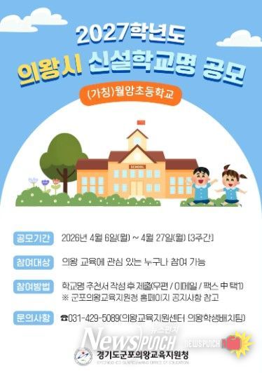 뉴스펀치 박상훈 기자 | 경기도군포의왕교육지원청은 2027학년도 9월 개교 예정인 (가칭)월암초등학교에 대한 학교명 공모를 실시한다고 밝혔다.