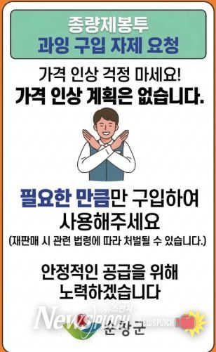 최근 일부 지역에서 원료 수급난에 따른 봉투 부족이나 가격 인상을 우려한 사재기 움직임이 나타나고 있으나, 순창군은 현재 충분한 재고를 확보하고 있어 공급에는 문제가 없다는 입장이다.