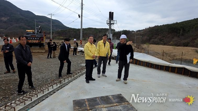 뉴스펀치 박세훈 기자 | 군위군은 지난 3월 31일 여름철 자연재난 대책 기간(5월15일~10월 15일)을 앞두고 인명피해 우려지역인 화수지구 급경사지 붕괴위험지역 공사 현장을 점검했다.